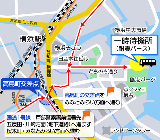 横浜駅東口スカイビル前停留所 横浜市西区高島2丁目32番地1地先 停留所のご利用(駐停車)は配車・到着予定時刻から15分間となります。